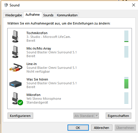 ich habe die im Betreff genannte externe Soundkarte. Habe mir jetzt ein Steelseries Siberia 200 geholt (hat jeweils einen Stecker für Wiedergabe und einen für Aufnahme) und würde das gerne daran anschließen. Von der Wiedergabe her habe ich auch keine Probleme, jedoch funktioniert das Mikrofon nicht. Ich kann es im Treiber auch gar nicht auswählen. Bei Windows selbst übrigens das Gleiche Problem, dort wird mir unter 'Aufnahmegeräte' lediglich "Was Sie hören, Soundblaster OmniSurround 5.1 " angezeigt. Wenn ich dann im TS die Einstellungen auf "Was Sie hören" stelle tut sich auch nichts.