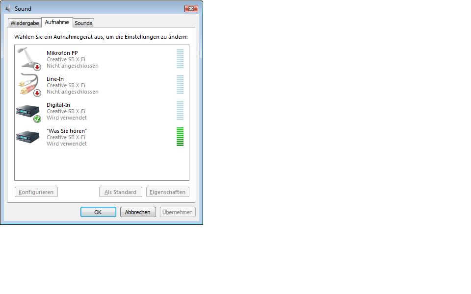 Das Problem was bleibt, mein Mikro wird nicht erkannt. Das Problem beginnt schon bei Windows (siehe Bild). Ja, ich hab alle Buchsen ausprobiert.