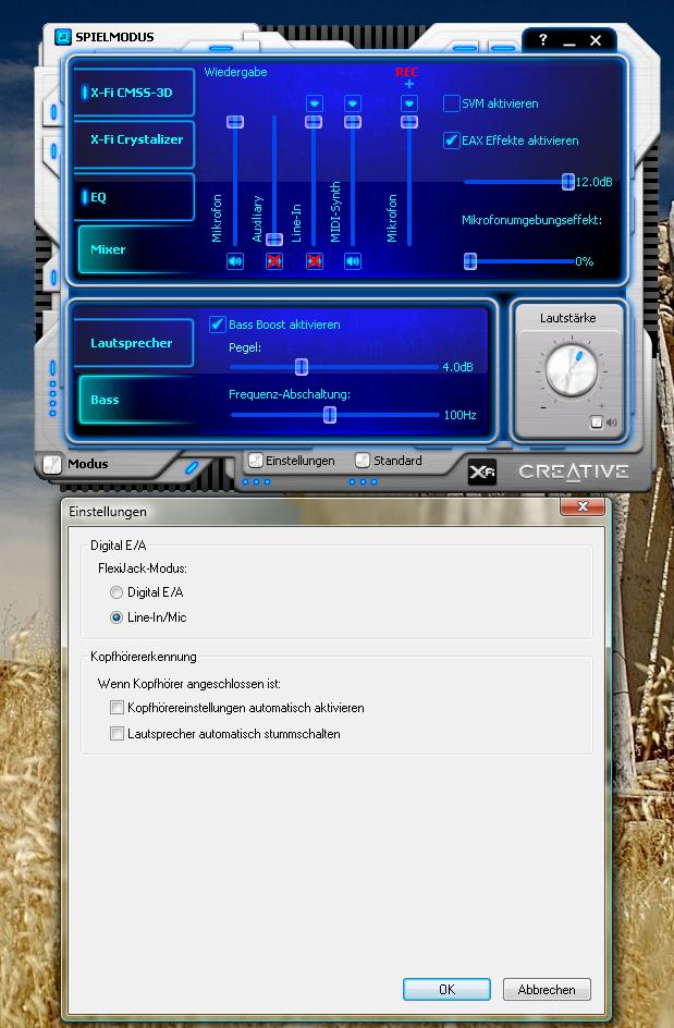 Hi habe die Creative xtreme Music nun zu meinem problem habe die karte eingebaut und treiber installiert (vorher die alten onboard deinstalliert und deakteviert)