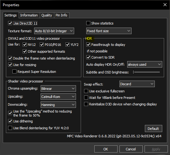 Bei MPC-HC funktioniert das ebenfalls, wenn Du MadVR als Videorander nutzt.