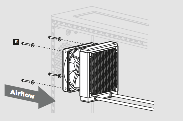 Die Hitze der CPU wird mit der Radiator obern montage separat weg befördert.