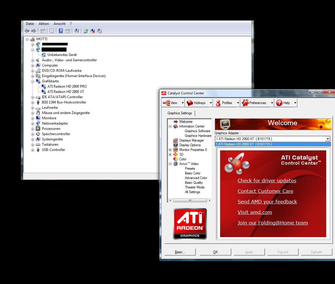 Im angehägten Screen sieht man, dass beide Karten erkannt werden.... (ich hatte vorher immer die Pro genutzt, doch immoment klappt mein Bildschirm nur bei der Xt.... o.O) Im Catalyst kann ich auch nicht die Pro auswählen....