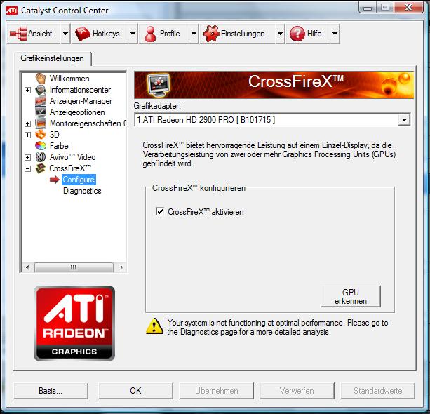 Morgen, ich habe meinem Kumpel seine 2900 Xt abgekauft und wollte diese (er hatte noch gewartet bis seine neue Karte da ist) einbauen um die mit meiner 2900 Pro im Crossfire laufen zu lassen.