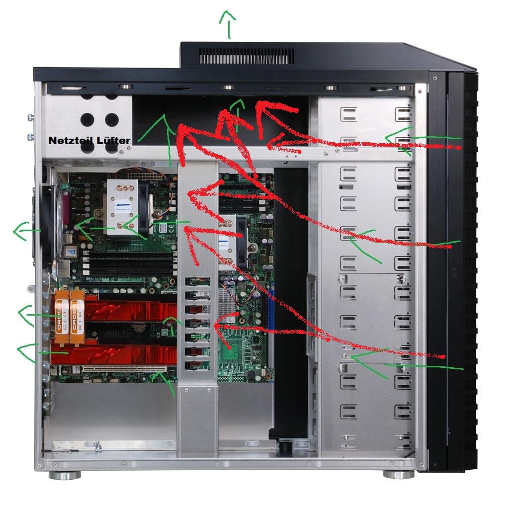 Ich hab mir jetz nen ventilator gekauft fpr 10 euro xD ich stell den grad direkt vor den vorder lüfter auf stufe 1 von 3 und habe im idle bei 29°C Case temp 35°C.