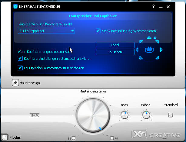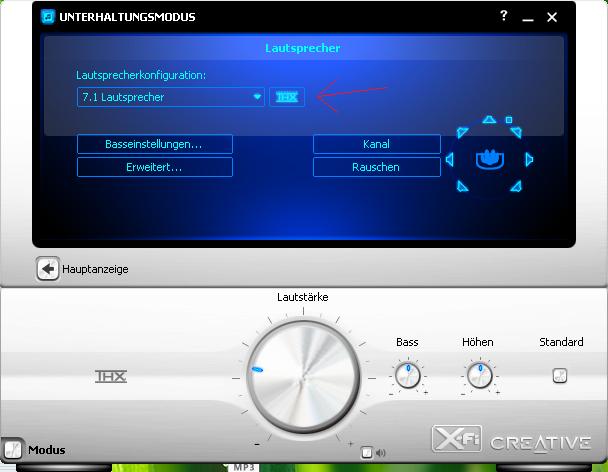 Klicke wie gewohnt auf Creative Konsole Starter dann auf Lautsprecher und Kopfhörer. Hier sind aber kaum noch einstellungen vornehmbar, auch die möglichkeit den Abstand der LS einzustellen kann ich nicht mehr finden ???!!!