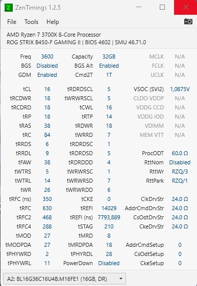 Kannst ja mal Zen Timings Screenshot posten, falls da drin ein AMD läuft. Dann kann man Dir schon mal mehr sagen. Allein das tRC kann sicher ne gute Ecke tiefer als 84.