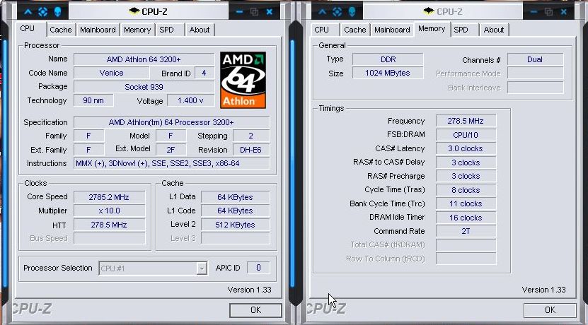 Auf dem Foto haben die 278,5MHz 3.3.3.8 2T -CPU 2785,5MHz Mehr macht mein CPU immoment nicht mit.(Bios)