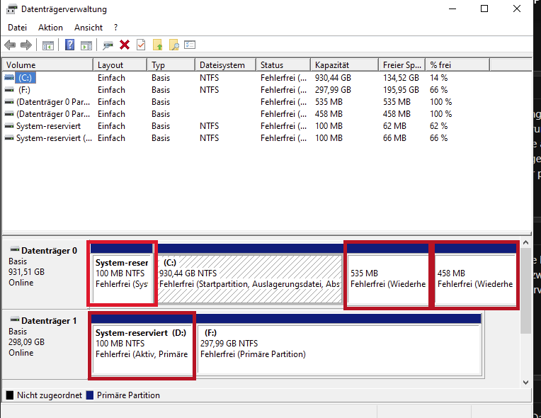 aber auf Datenträger 1 ist auch noch eine aktive System-Reserviert (Bootloader).