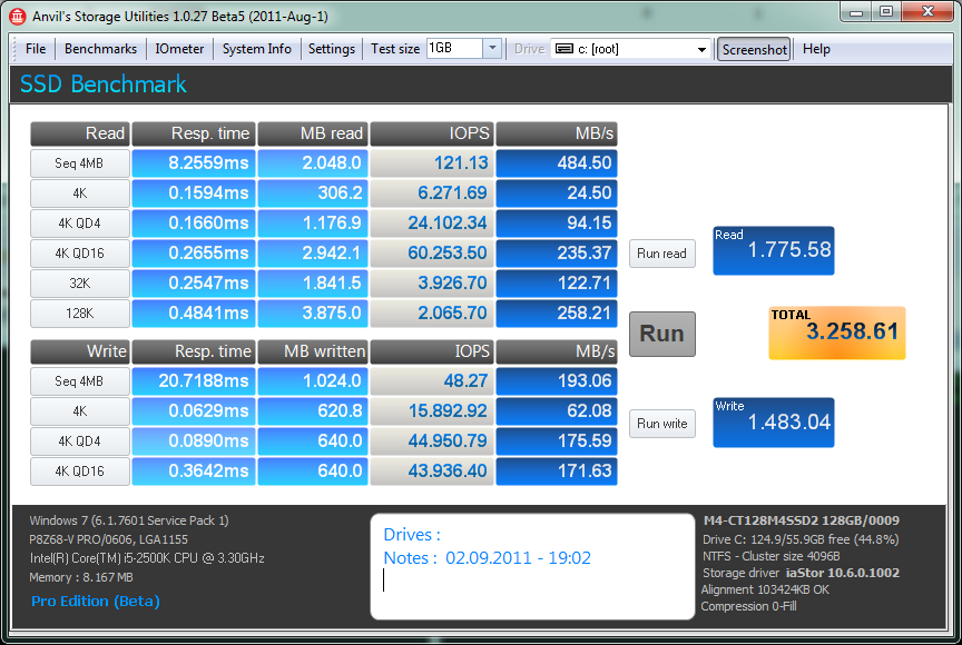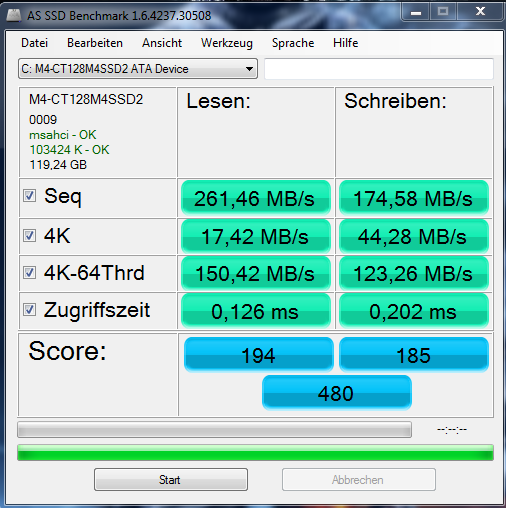 Benchmark mit alter (0002) Firmware und ohne AHCI