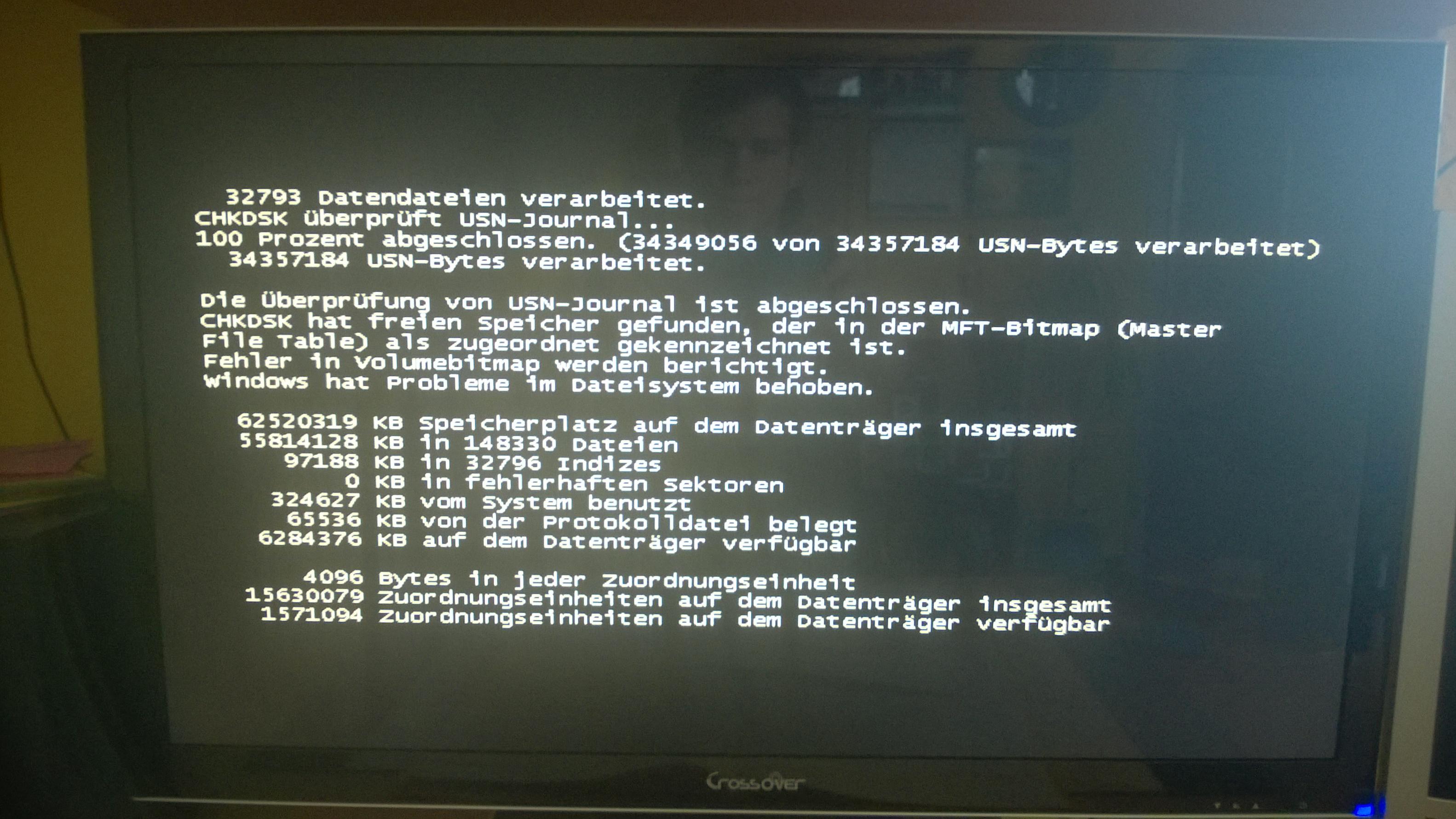 Ich denke mir nur so "Mmh, ok ... interessant". Da das System partout nicht mehr reagierte und die HDD-LED konstant leuchtete, habe ich den Reset-Knopf gedrückt.
