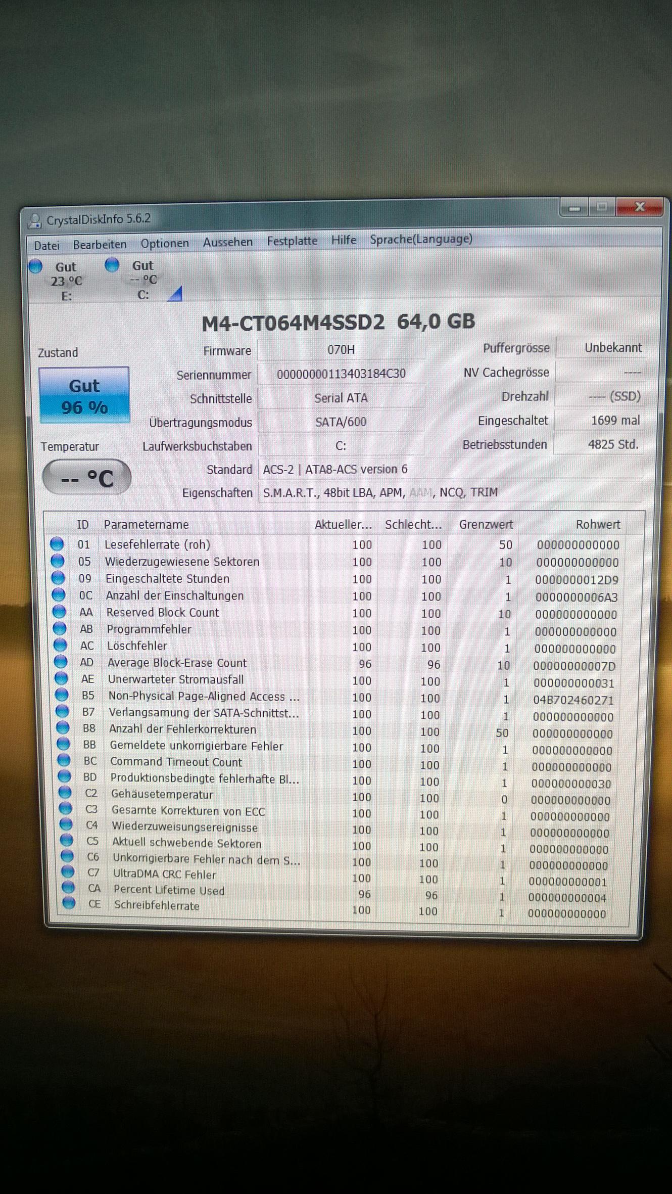 Beim Boot hat er dann ewig gebraucht, um die Laufwerke zu laden und siehe da ... die m4 64 GB konnte nicht gefunden wurden, einzig die WD Green wurde aufgelistet.