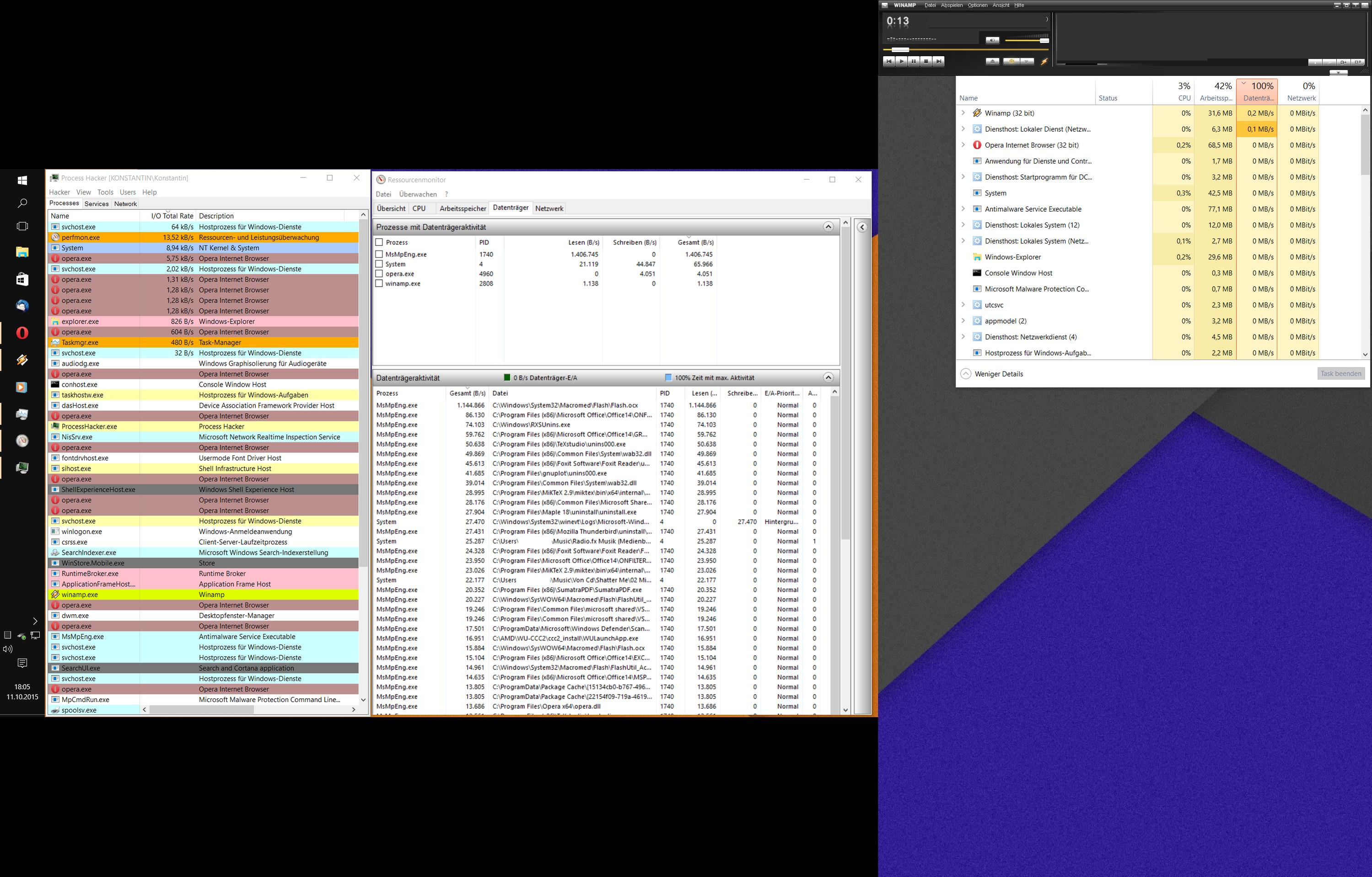 Denn kurioserweise liegt die Datenträgeraktivität bei nahezu 100% obwohl fast nichts geschrieben wird.