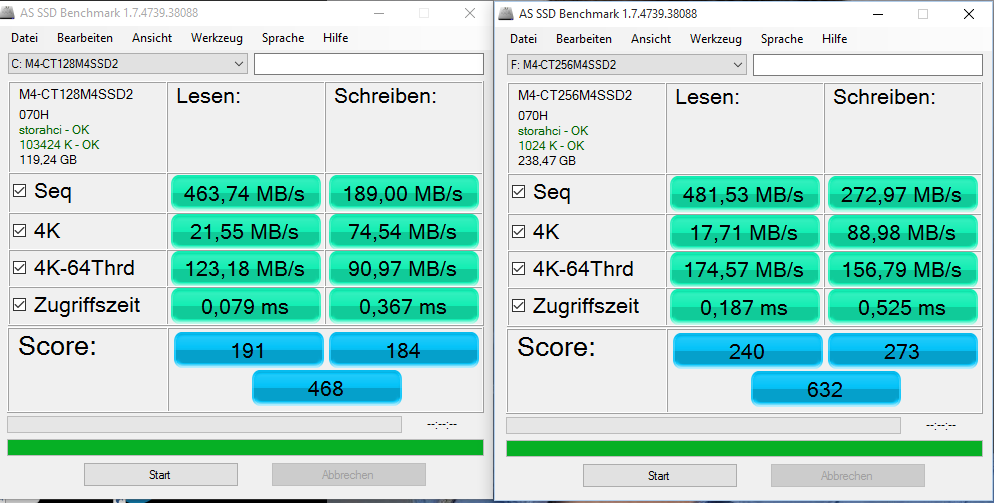 Es sind eben immer kurze Einbrüche bei denen die SSD mit kleinsten Schreib- Leserate voll ausgelastet wird. Vlt. ja doch software bedingt, aber welcher Prozess dann?