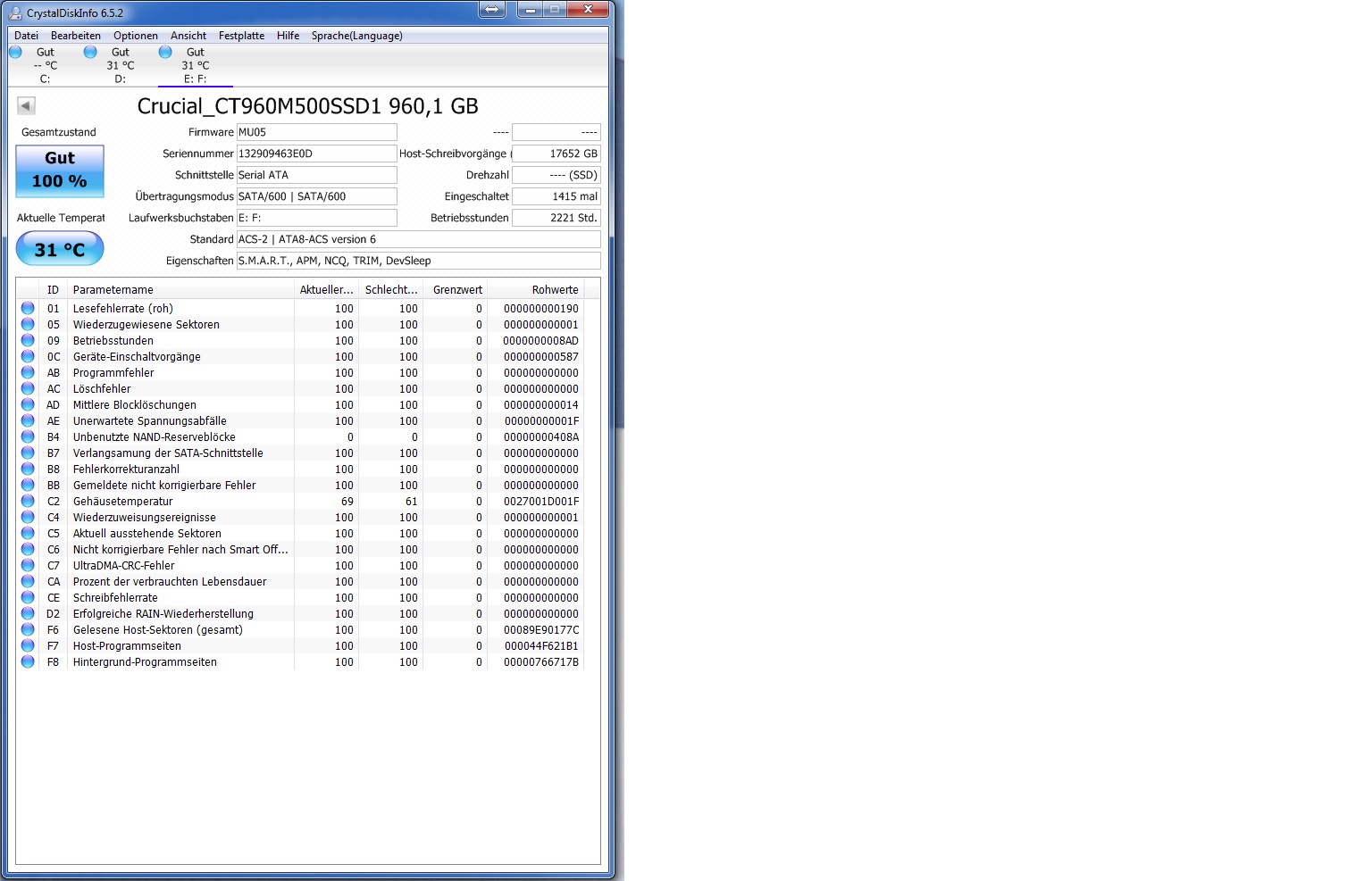 meine SSD schaltet sich sporadisch ab (Win 7). Crystal Info gibt keine Fehler und einen sehr guten Zustand an. Aktuelle FW ist drauf. Kabel hatte ich auch ausgewechselt. Gestern abend ließ sie sich nicht mehr aktivieren. Heute morgen wurde sie klaglos erkannt.