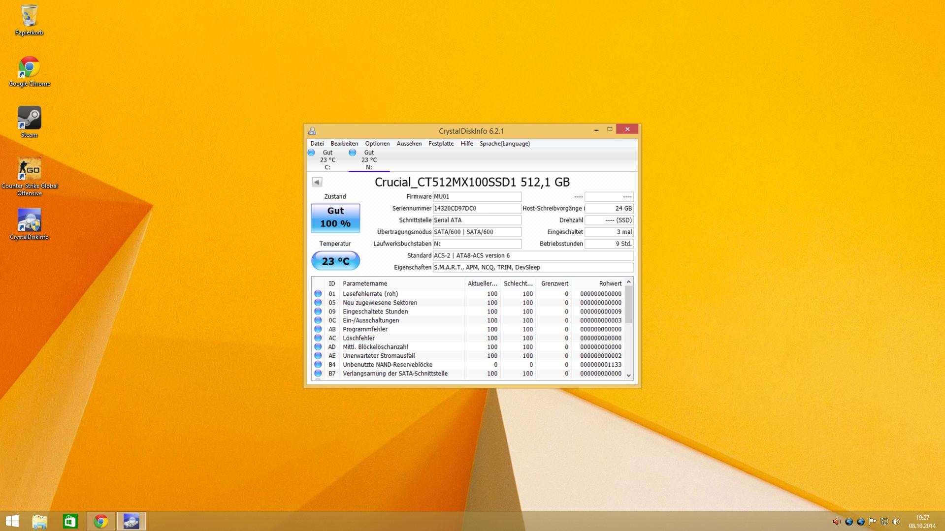 Ich habe da ein Problem. Mein Windows 8.1 liegt auf meiner Samsung evo 120GB SSD. Jetzt habe ich mir gestern eine sekundäre SSD für Spiele gekauft, und zwar die Crucial MX100 512GB . Einbauen und in Betrieb nehmen war kein Problem.
