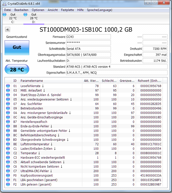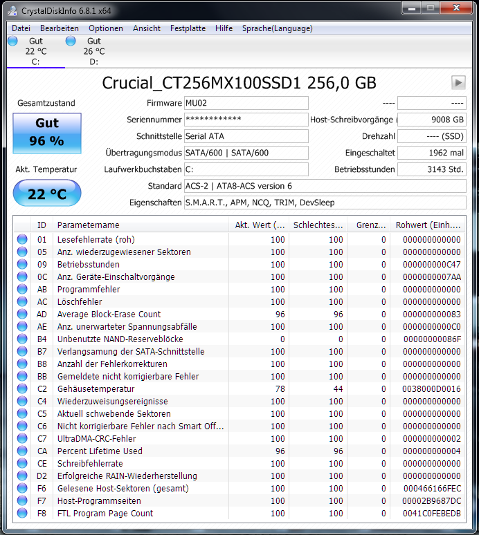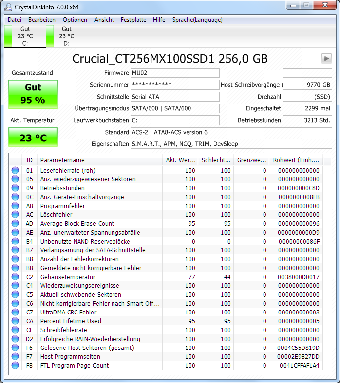 Habe mit CrystalDiskInfo die Informationen der SSD und HDD ausgelesen, wie hier zuvor auch empfohlen und dem Anhang hinzugefügt.