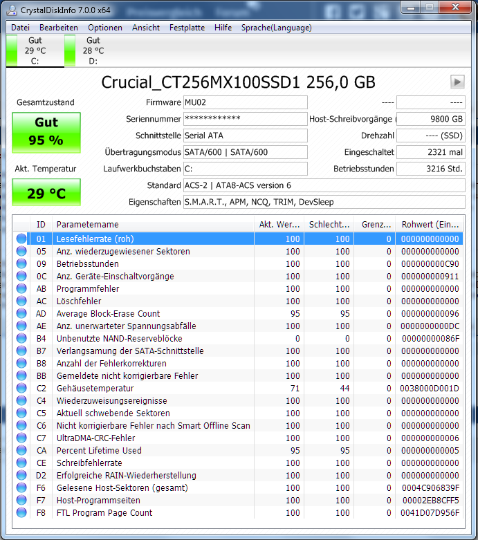 Edit: Eben Rechner angeschaltet, wieder wurde die SSD nicht erkannt und ich befand mich im BIOS. Habe dann mal nichts an den Einstellungen geändert und einfach nur den Rechner ausgeschaltet. Nach einigen Sekunden wieder an und siehe da, Win 7 lädt.. ich glaube, beim nächsten halbwegs guten SSD-Angebot schlage ich zu.