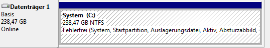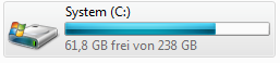 Zuerst hatte ich 65GB frei, dann habe ich die Festplatte defragmentiert und dadurch 5GB verloren. In der Datenträgerverwaltung sieht man aber, dass ich die Platte nicht in mehrere Teile partitioniert habe.