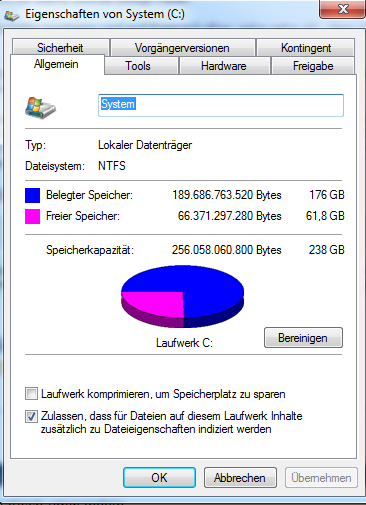 Heute habe ich meine Steam Spiele von der HDD auf meine Primärfestplatte (Crucial MX100) verschoben. Da ist mir aufgefallen, dass ich nur 60 von 240GB frei habe, obwohl ich sicher keine 180GB belegt habe.