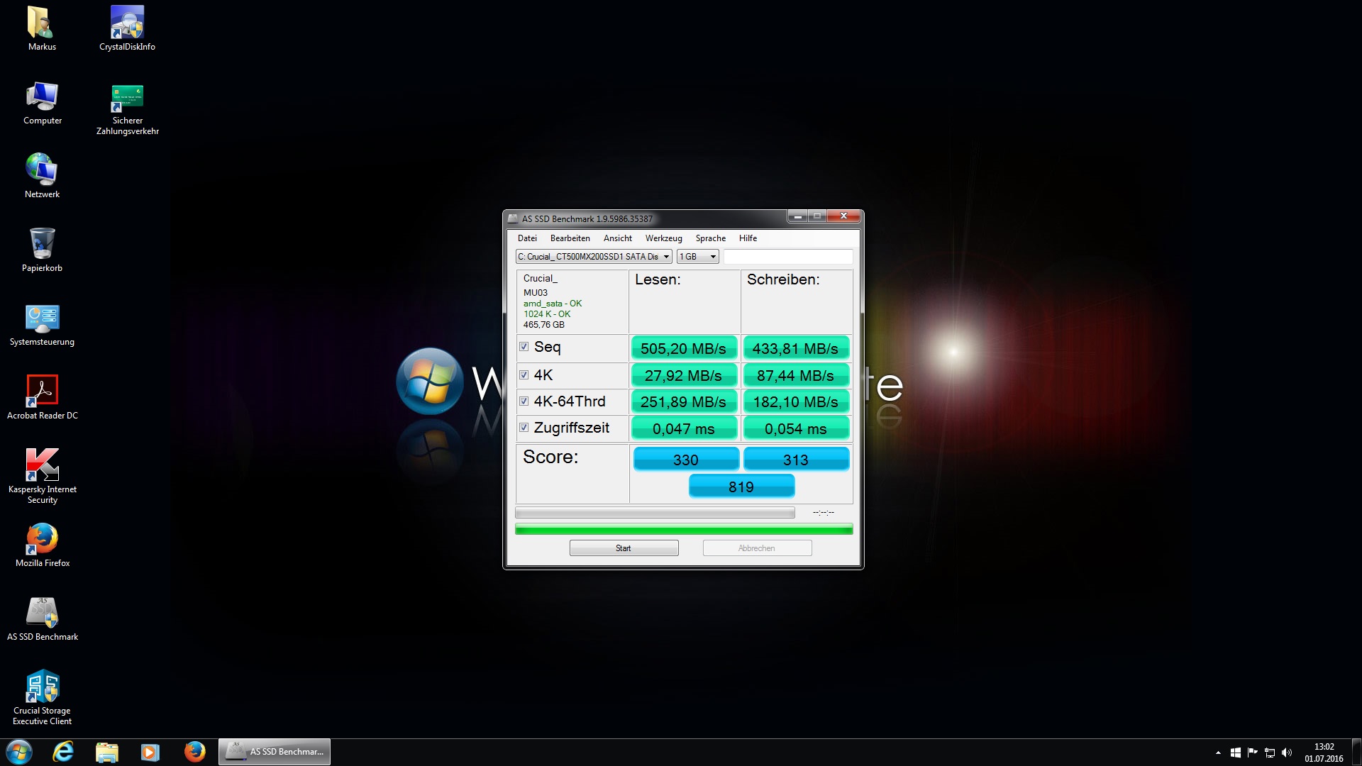 Hallo wollte mal fragen ob die Werte von meiner Neuen Crucial MX200 500GB okay sind oder zu niedrig ?