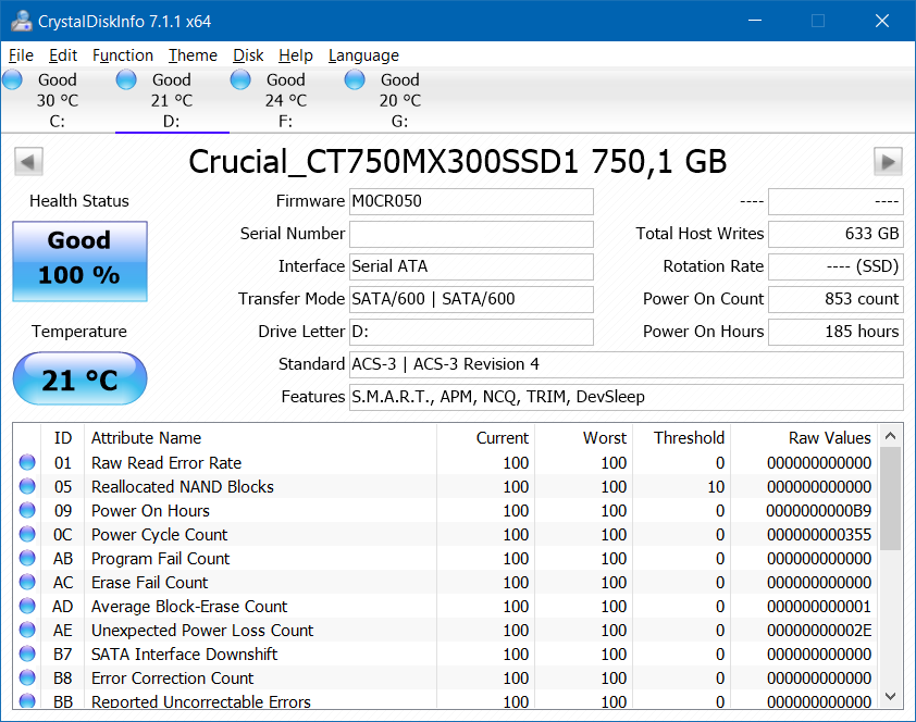 Edit: Tatsächlich zeigt mir CrystalDiskInfo nach dem Update an, dass die SSD kein APM mehr unterstützt, siehe Fotos.