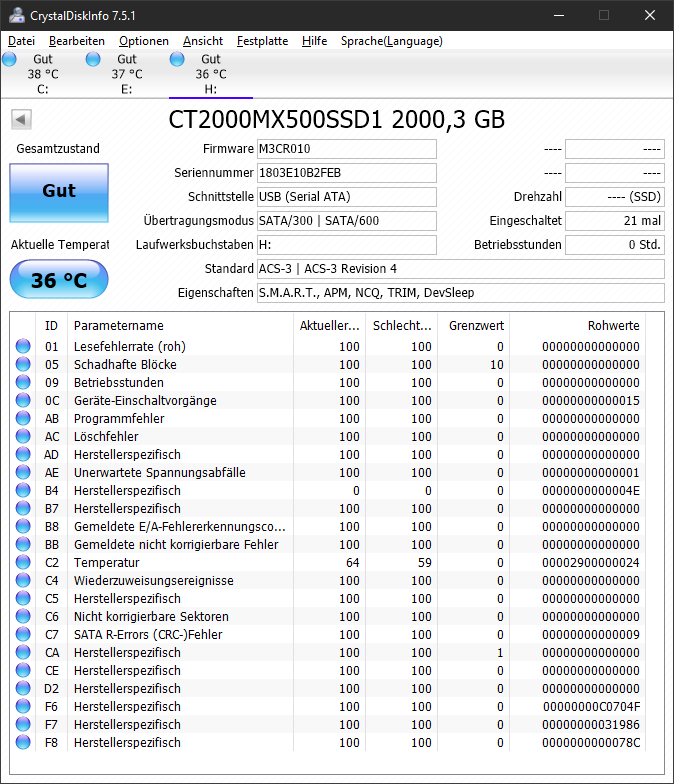 In den angehängten Bildern ist allerdings grundsätzlich zu erkennen, dass die Festplatte an sich wohl keinen Defekt hat. Wenn ich sie per USB verbinde, dann funktioniert sie auch tadellos.