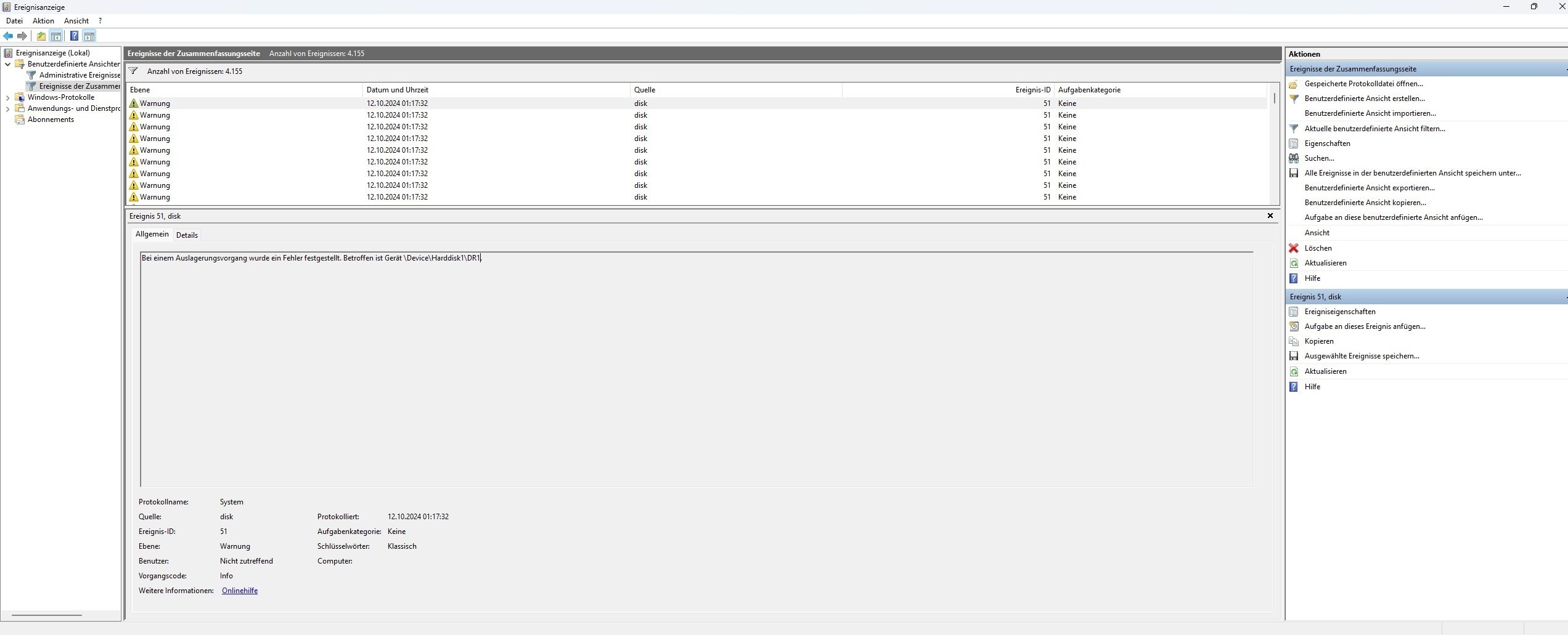 Bild 1 zeigt die Meldung die während des Kopierens auftrat und da war die platte dann einfach weg, ein Neustart und die Platte wurde wieder erkannt.