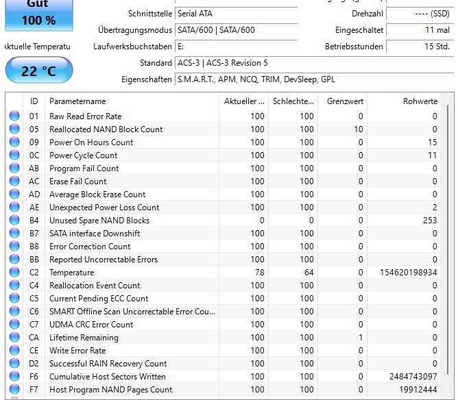 Crystal Disk zeigt auch keine Auffälligkeiten