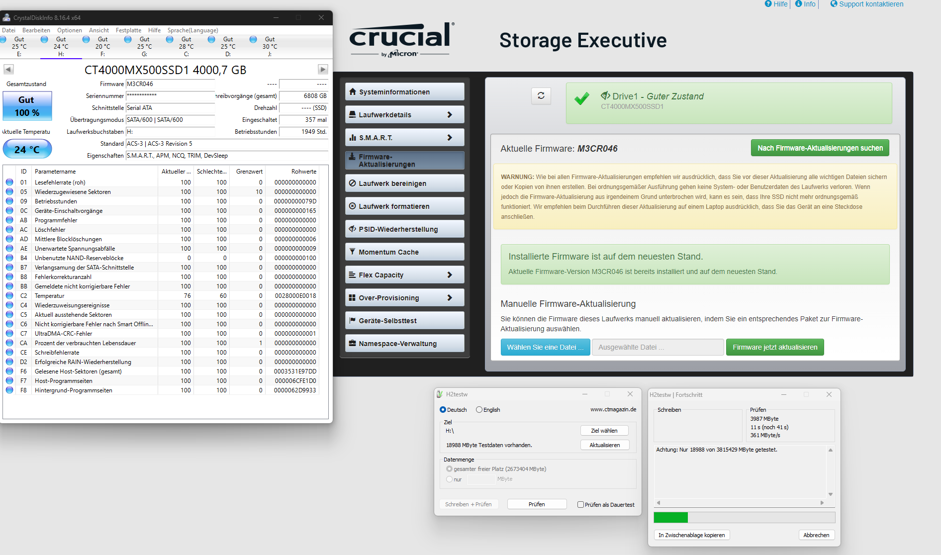 - Crucial Tool wieder an, dann sollte die SSD up-to-date sein