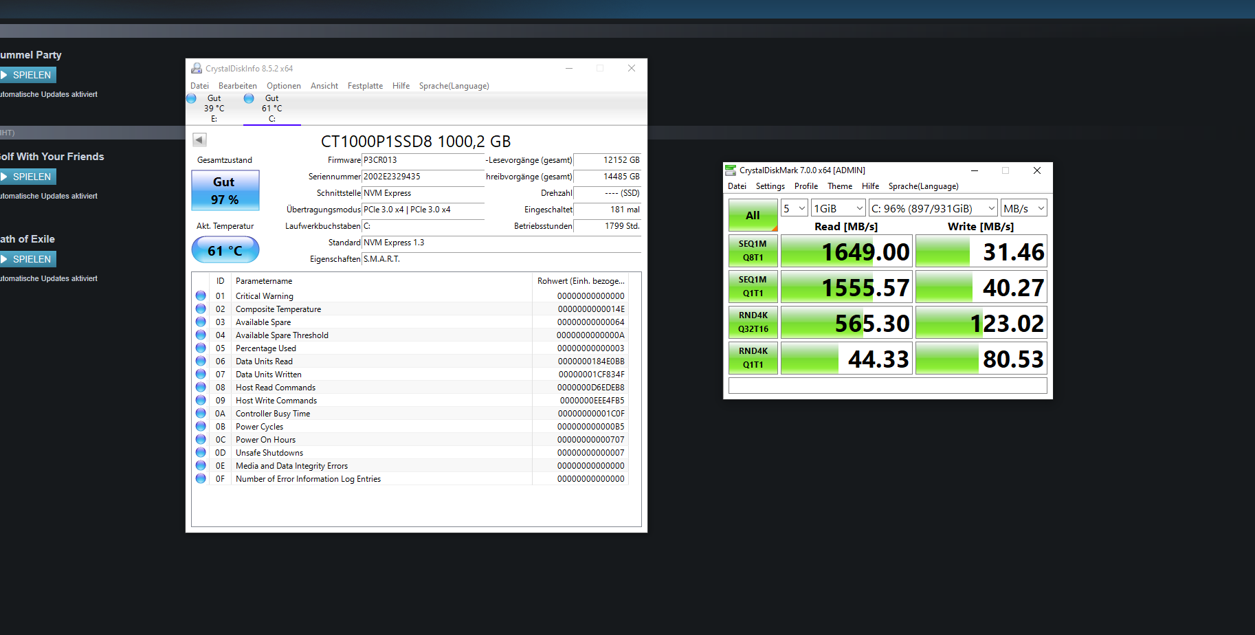 Ist das vielleicht ein Bug von Steam ? bei anderen Platformen habe ich diese Problem nicht. Unten Screenshots wie sich die Festplatte verhält ( aber nur während ein Update läuft!). Ansonsten habe ich auch 1,5 GB/s writespeed.