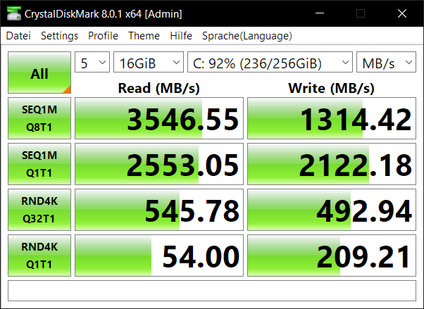 Die Transferraten dabei hatten mich zum Ende hin soweit verwundert dass die weiteren Tests auch Temperaturdiagramme enthalten – das wollte ich ursprünglich gar nicht mit aufnehmen.