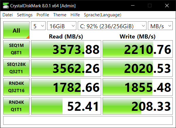 Die P5 ist kein Schnäppchen, daher sehe ich die Einbrüche beim Stresstest als größeren Minuspunkt an. - Nichts desto Trotz ist die P5 eine SSD welche durchaus empfehlenswert ist wenn nicht dauerhaft sehr viel darauf am Stück geschrieben wird. Das sieht man auch an den Benchmarks unter Windows nach den Klonvorgängen, die Leistung bleibt zum großen Teil erhalten.