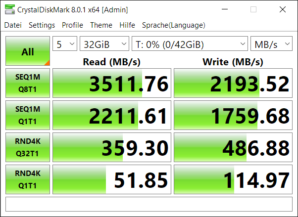 | Crucial P5 2TB | ![]() | ![]() | ![]() | ![]() Profil "Default" | ![]() Profil "NVME" |