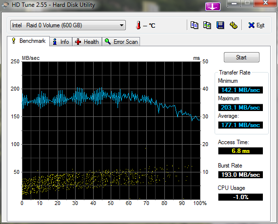 Also ich werde sicherlich noch etwas rumschrauben an den Einstellungen aber im Moment bin ich etwas enttäuscht von SATA3 und SSD. Hatte zuvor 2x Raptor SATA2 in RAID0 diese waren mindestens genau so schnell.