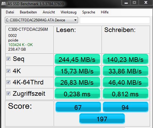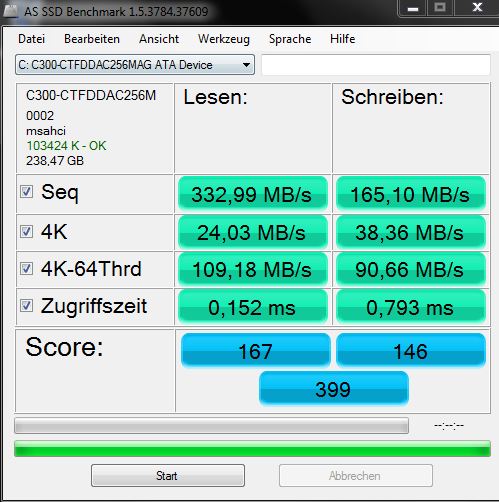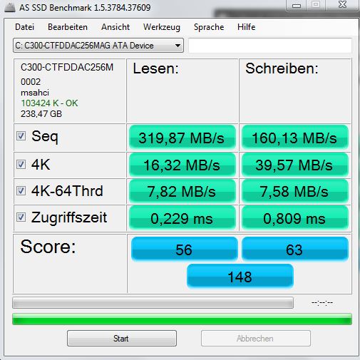 Jetzt habe ich das ASUS Maximus 3 Extreme mit der C300 SSD 256GB.
