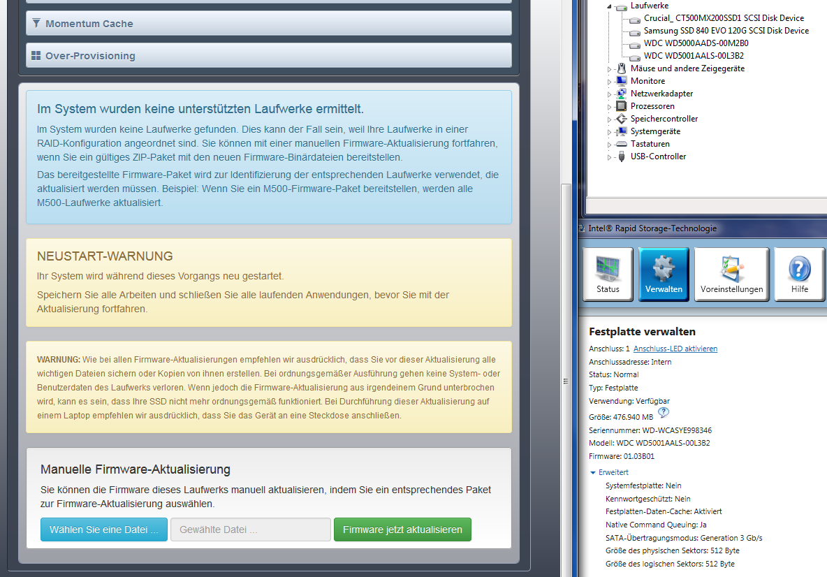 Das HyperDuo genannte Caching des Marvell musst Du übrigens erst aktivieren, denn läuft der im RAID Modus und kann nur noch über das eigene BIOS beim Booten (wenn ASUS das nicht deaktiviert hat) oder die Verwaltungsstoft konfiguriert werden, damit sieht Du dann aber die SSD auch nicht mehr so einfach von außen, kannst z.B. keine S.M.A.R.T. Werte auslesen, kein FW Update machen etc.