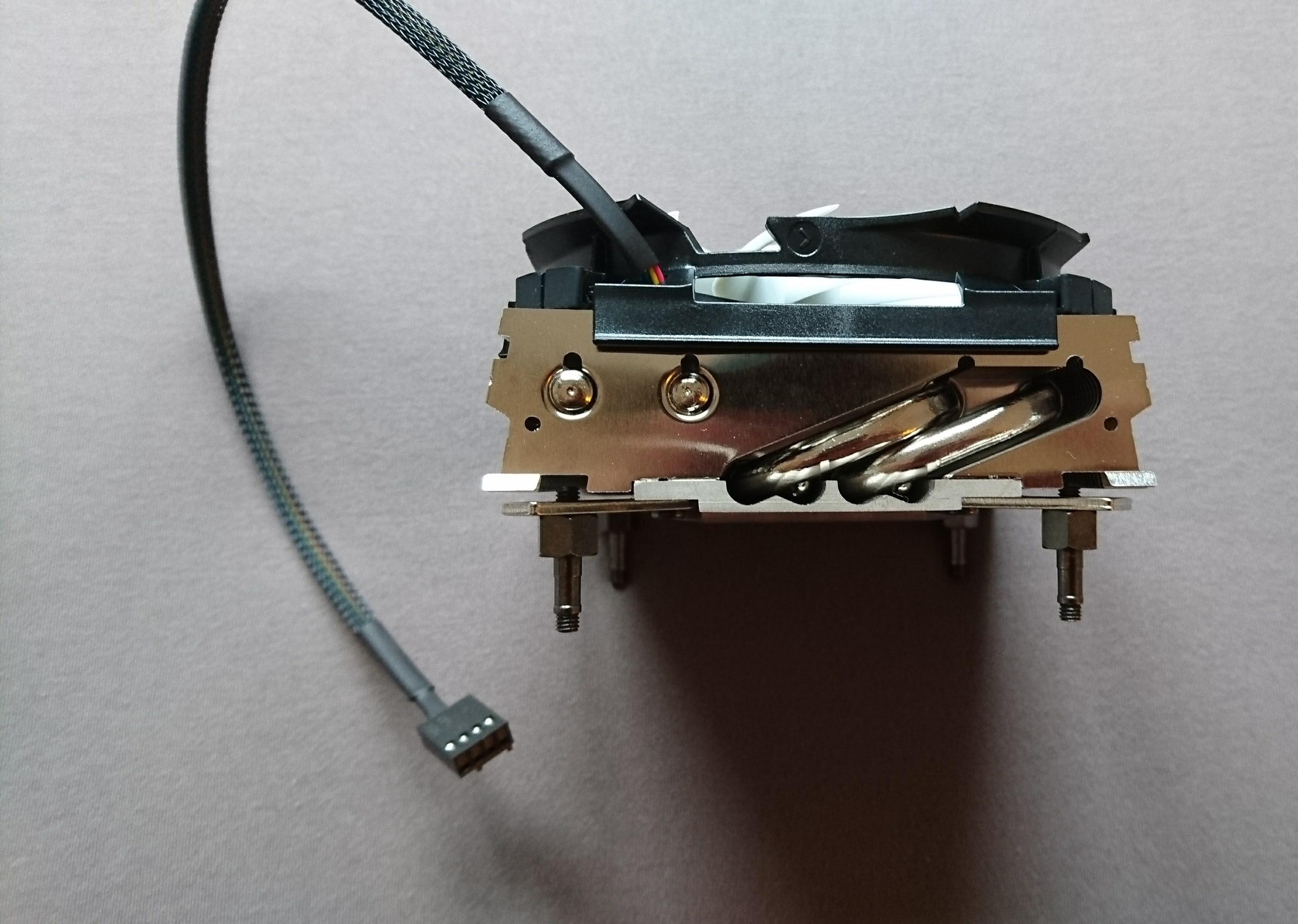 Der Lüfter des Kühlers ist bei der Lieferung bereits montiert. Diese wird auf den Kühlkörper mit zwei