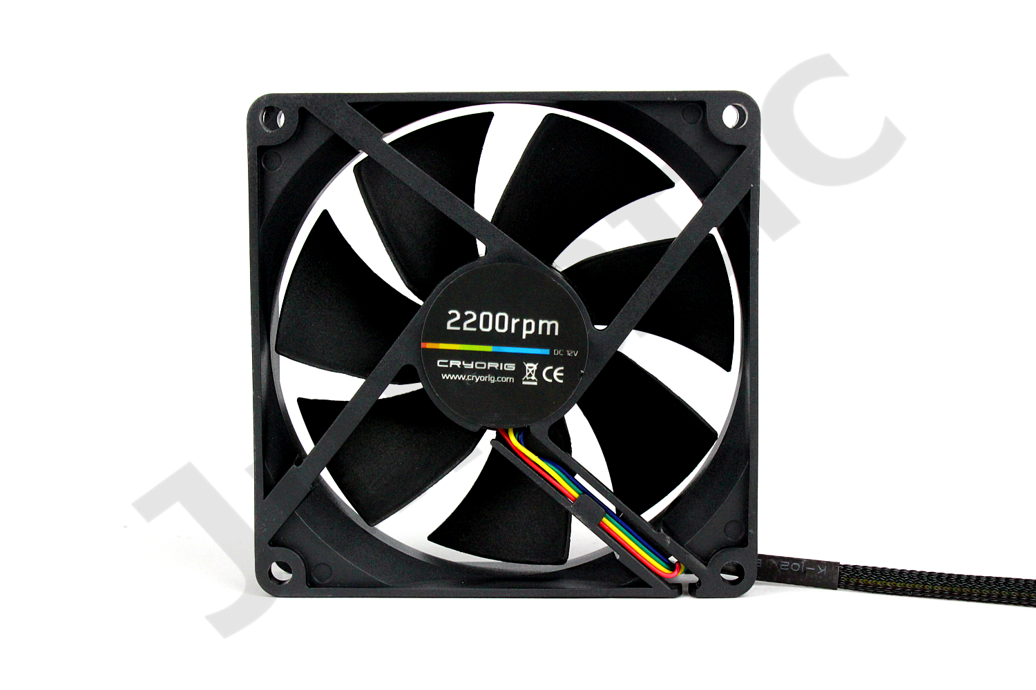 Untypisch für Cryorig CPU Kühler, ist der komplett in schwarz gehaltene 92mm Lüfter, welcher dem M9i beigepackt ist. Beim H7 wurde das bekannte, schwarz-weiß Farbschema durchgezogen. Für einen kleinen 92mm Lüfter, besitzt der Lüfter des M9i allerdings vergleichsweise große Lüfterblätter. Das lässt auf angenehmere Lautstärkewerte hoffen als es bei den meisten 92mm Lüftern der Fall ist.