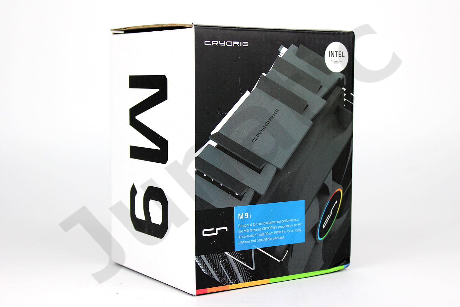 Wie schon beim Cryorig H7, setzt man auch beim M9i auf eine bedruckte Verpackung, die Bilder und Informationen zum bereithält.