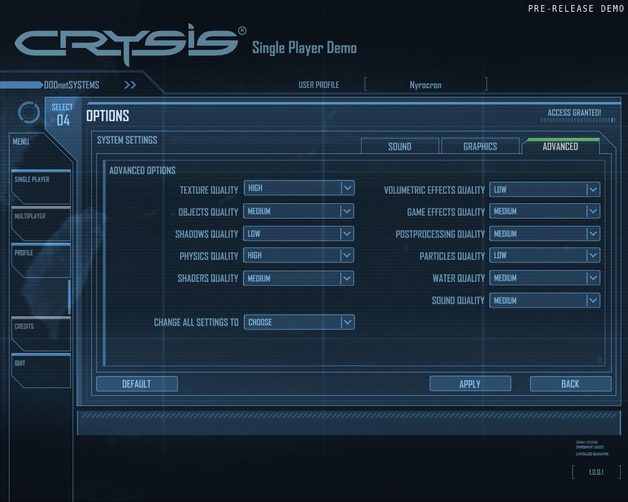 Ist man aber derjenige, der zu viel Geld für "Spielereien" übrig hat, so vergnügt man sich immerhin mit der Stufe High, die dennoch nicht das zeigt, was das Spiel eigentlich kann. Ich bin mir sicher, dass man da in einem gewissen Zeitraum noch an Performance gewonnen hätte, aber dies wird wahrscheinlich nur bedingt per Patches erfolgen.