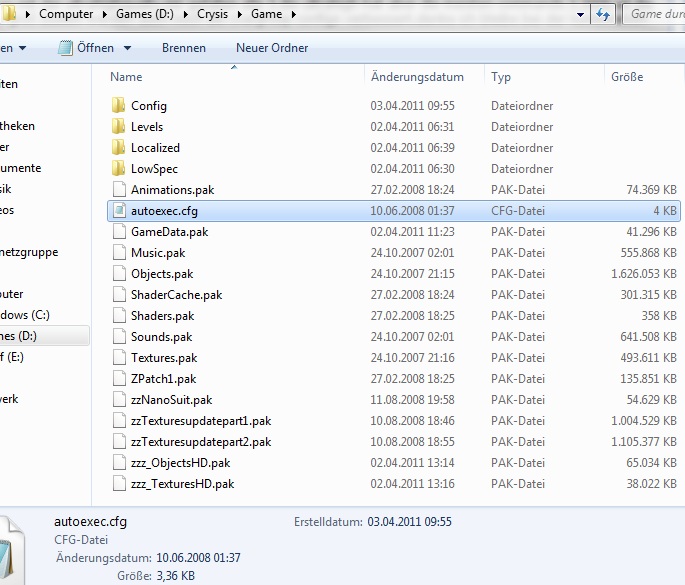 PS:hat einer ne ahnung wo die autoexec genau liegen muss ? crysis ordner game ordner oder game/config ordner ? Hab jetzt iwie mehrere quellen gesucht und jede sagt was anderes.