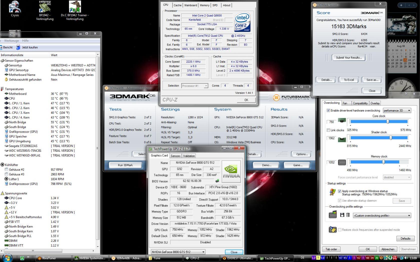 Ich kann dir nur empfehlen den neuen Treiber 177.83 zu installieren, der bringt teilweise 1 FPS mehr (den alten erst deinstallieren und registry cleanen!). Ansonsten könntest du mir OC noch etwas herausschlagen.