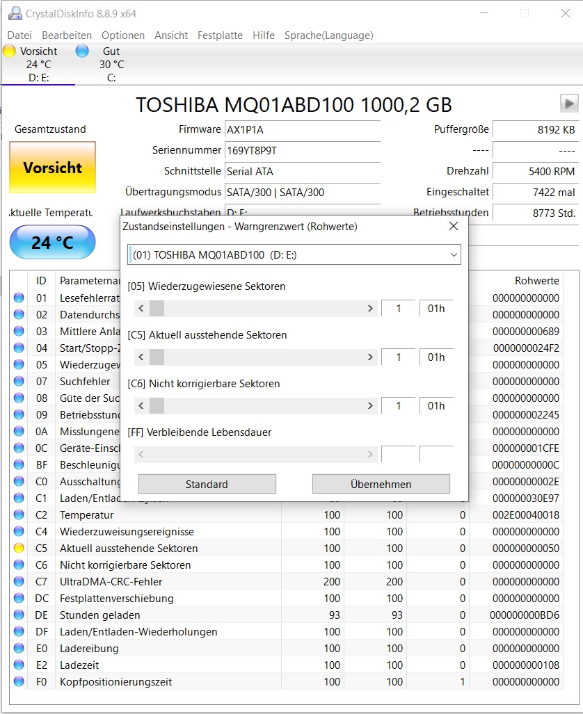 Crystal Disk Info: Festplatte in schlechtem Zustand. Was tun?