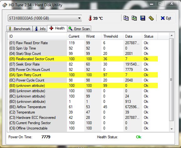 hab mal Crystal Disk Info gestartet und bei Zusand stand dann "Vorsicht"...