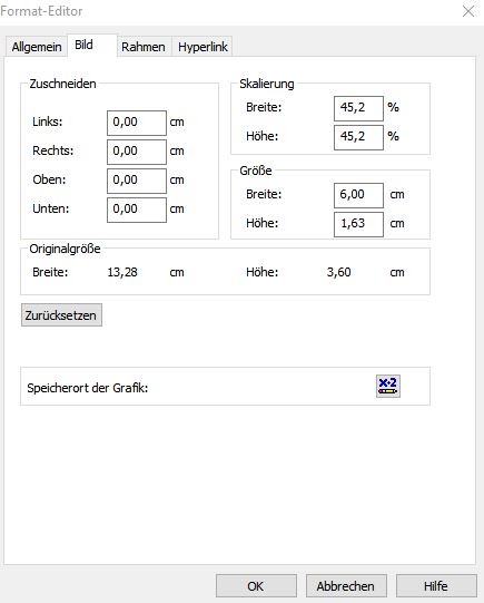In Bildeingeschaften kann ich "Variable Größe" sagen und dann wird das Seitenverhältnis beibehalten, jedoch wird das Bild in Originalgröße angezeigt und nicht wie gewünscht auf max. Breite ca. 2cm.