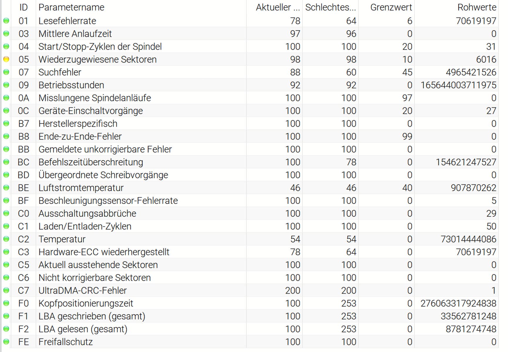2,5 Zoll Seagate HDD mit folgenden SMARTwerten: