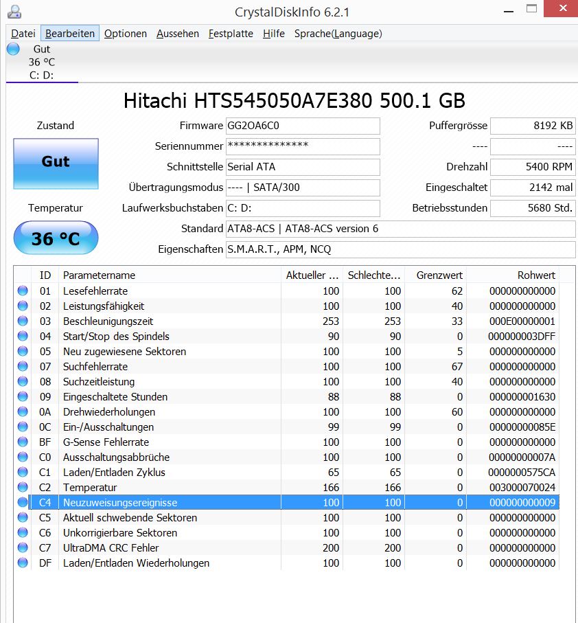 Crystaldiskinfo sagt meine Festplatte ist vom Zustand gut. Kann mir das bitte jemand auswerten? ich kenne mich da leider gar nicht aus.