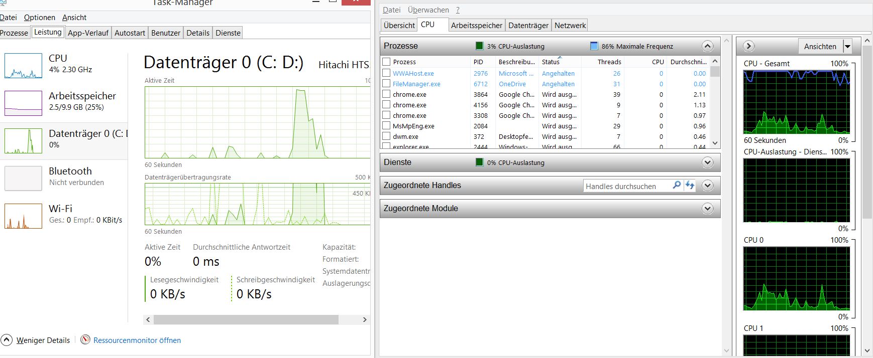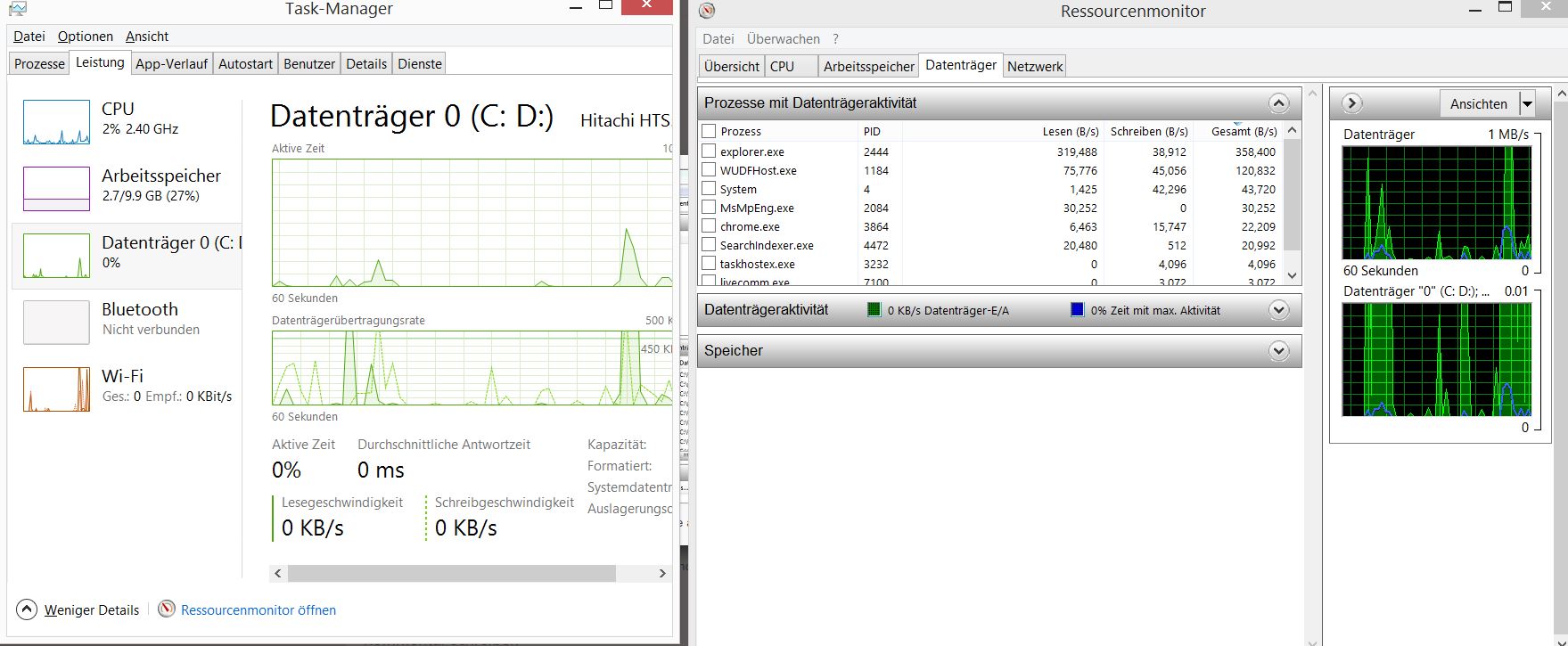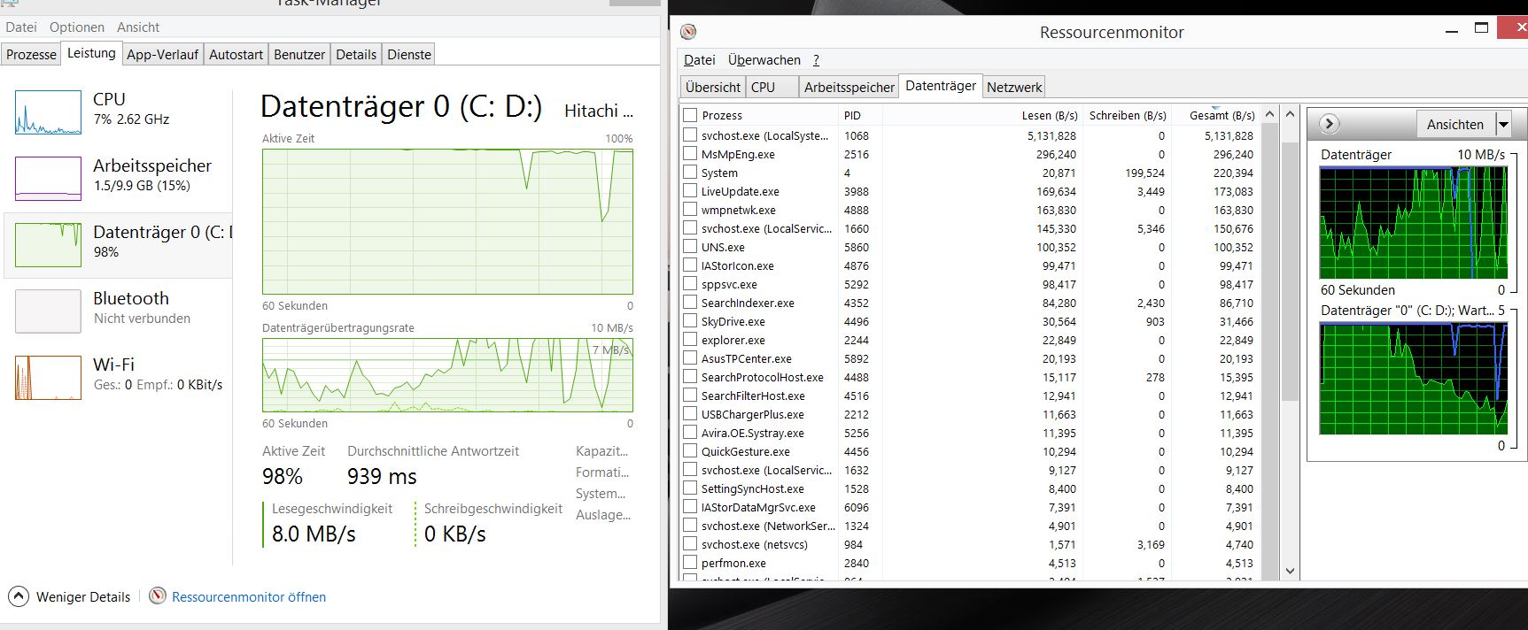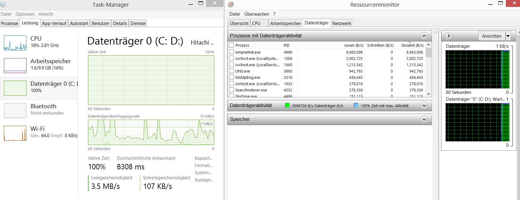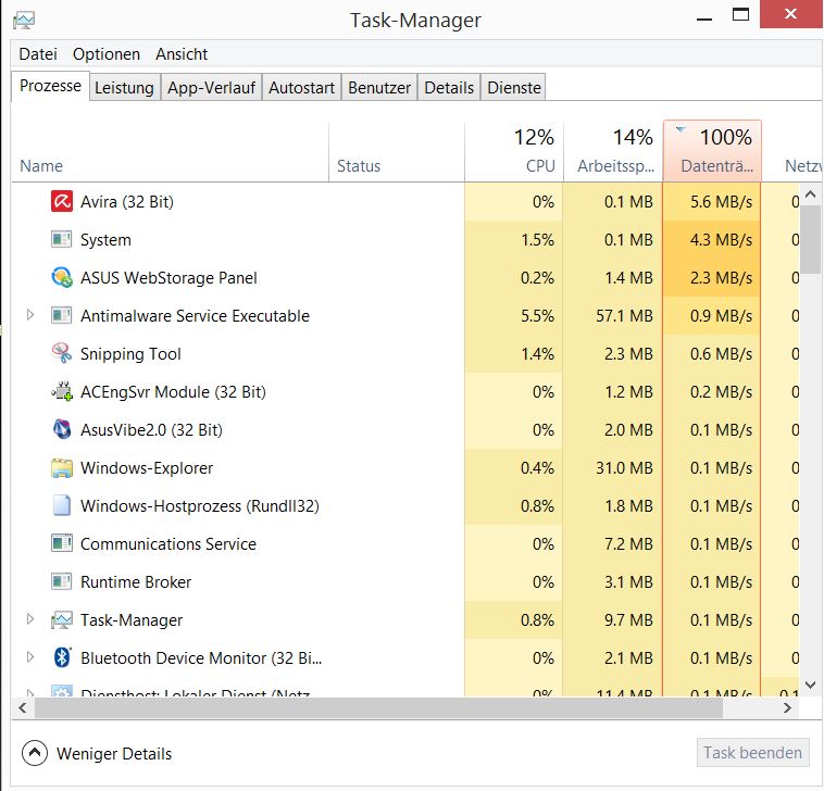 Im Taskmanager kann ich sehen das meine Festplatte oftmals ohne Grund auf 80- 100 % belastet wird.