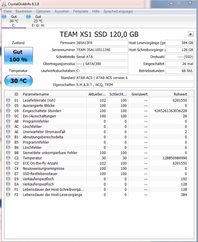Wenn CrystalDisk sagt GUT dann passt's auch meistens :-)