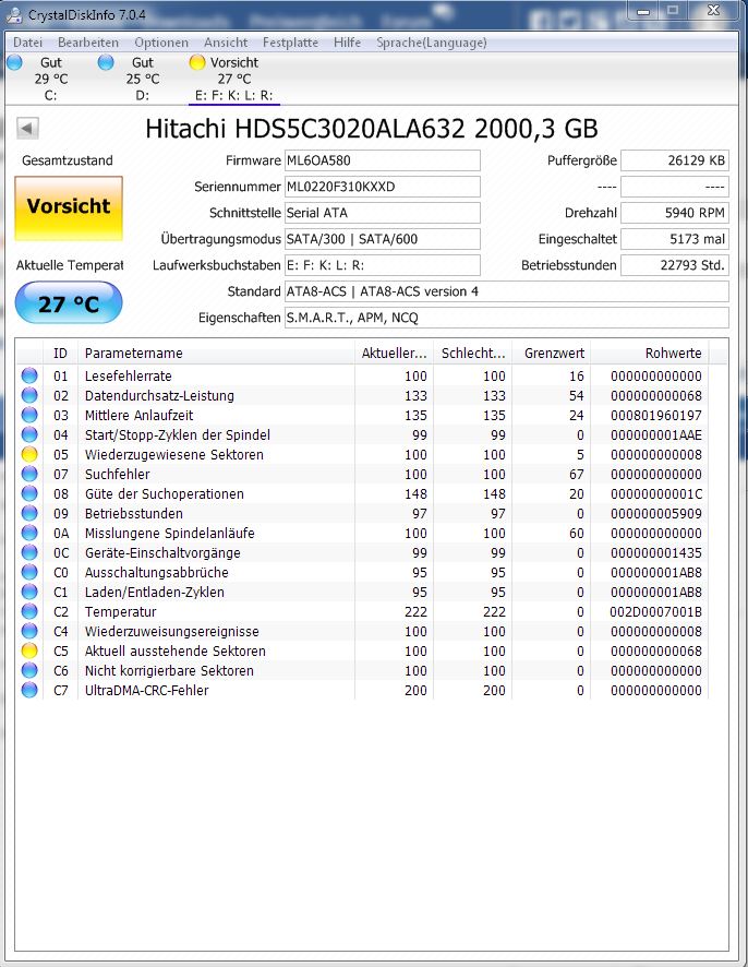 Jetzt zeigt mir CrystalDiskInfo folgendes an: